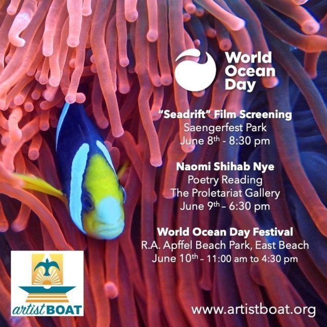 The Artist Boat World Ocean Day Festival is held at R.A. Apffel East Beach Park, at the far eastern tip of the island, Saturday, June 10th, from 11 am – 4:30 pm.